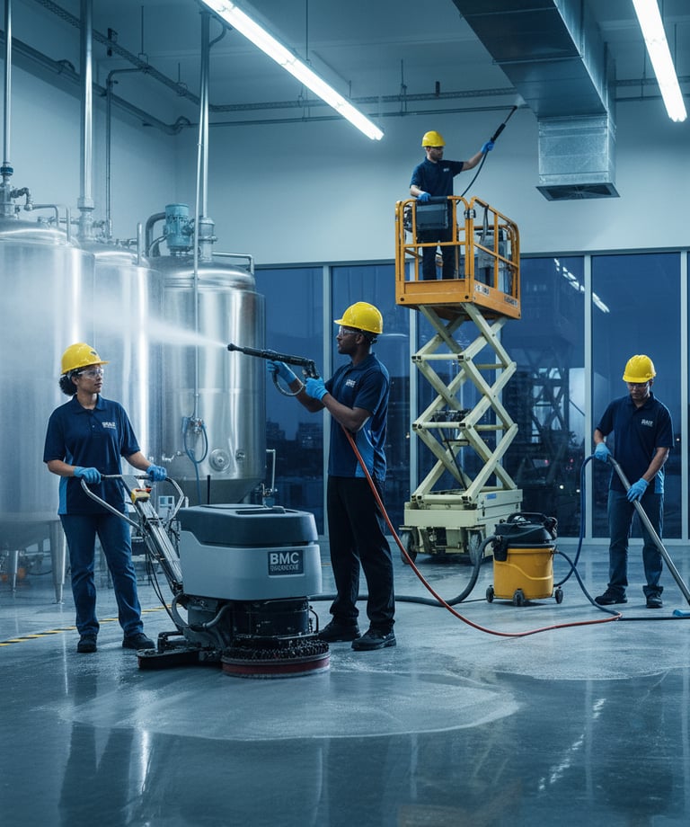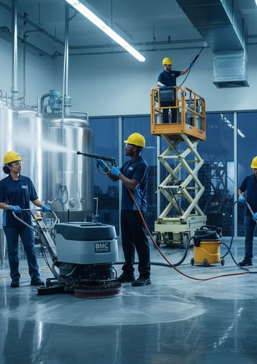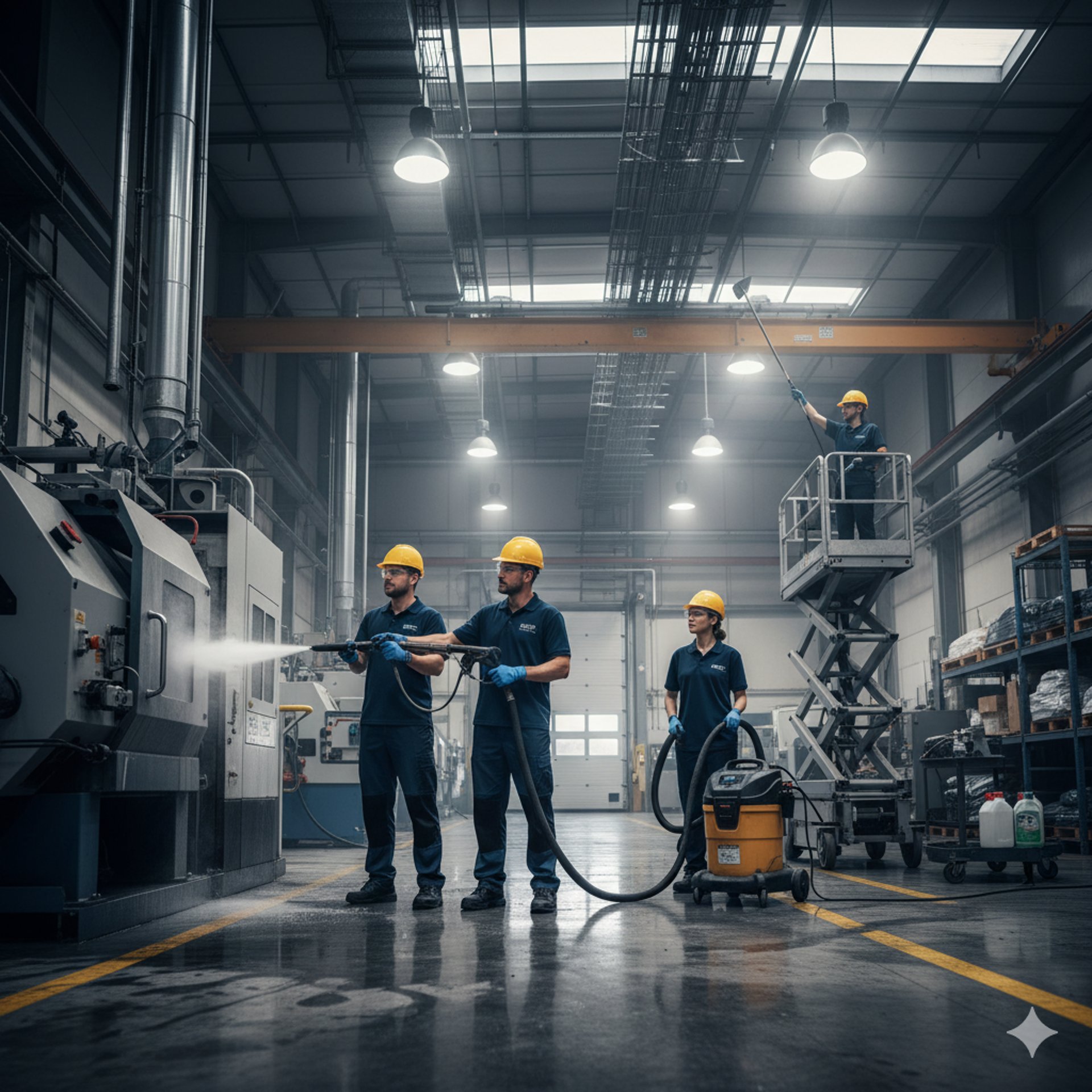 Nettoyage des installations industrielles pour maintenir un environnement de travail sûr et conforme aux normes.